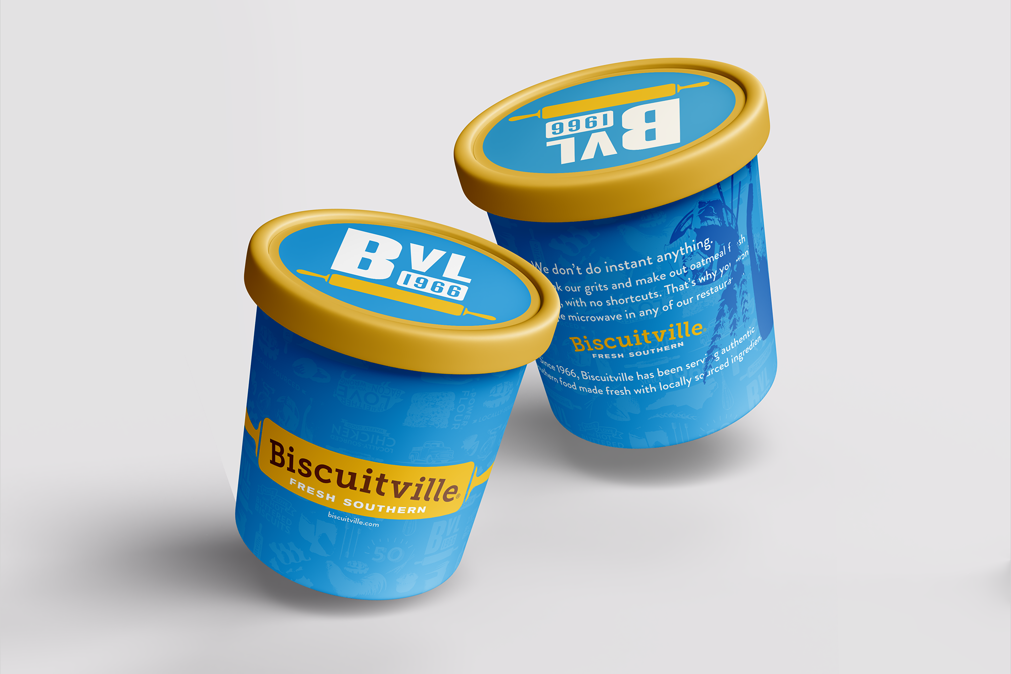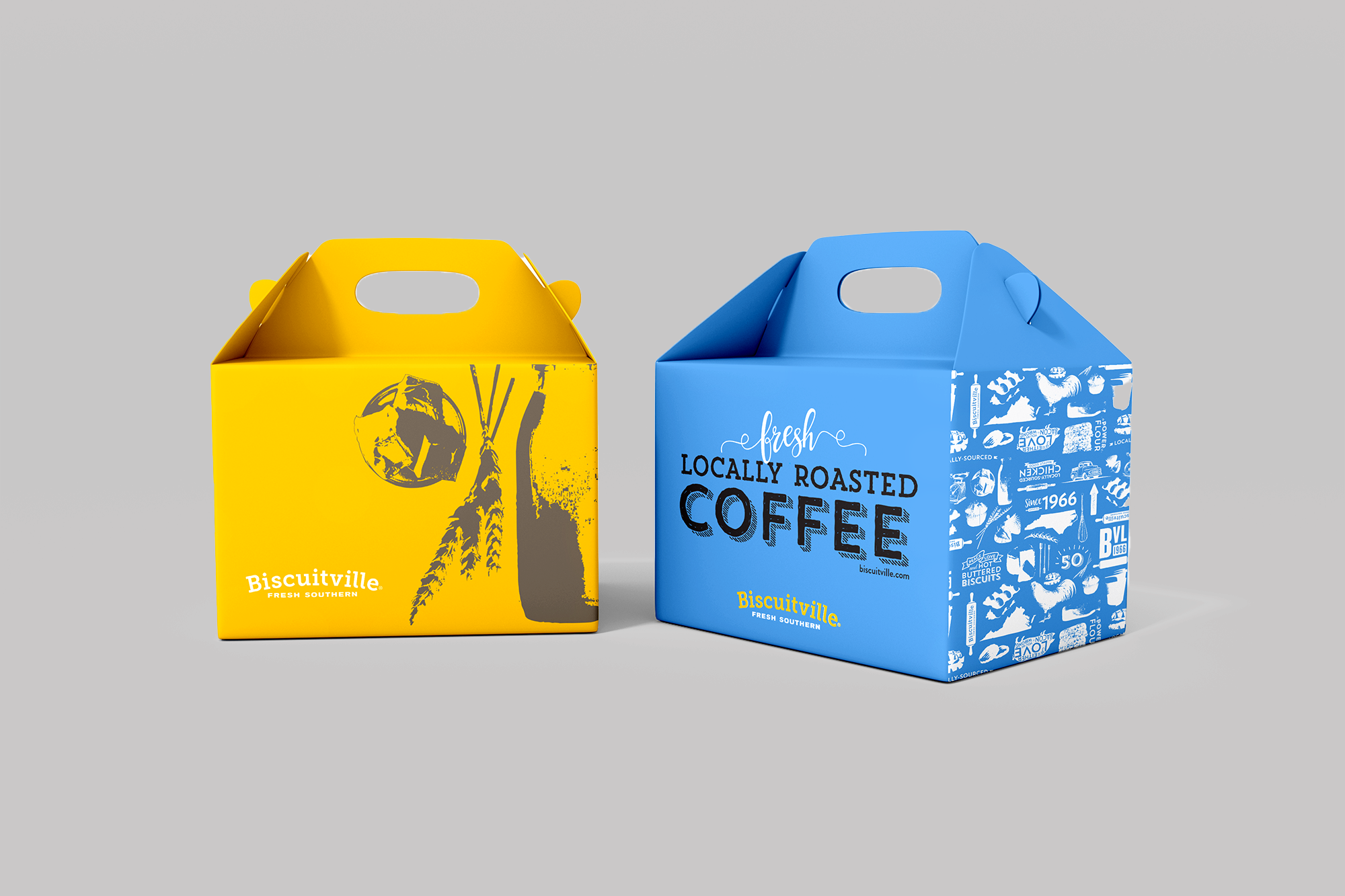 Biscuitville, founded in 1966, is a southern style fast-food breakfast restaurant with locations originally in Virginia, expanding now to North & South Carolina and Tennessee. Priding themselves on ingredients sourced from local farms and family-owned partners, Biscuitville was committed to their packaging preserving this historic and home-grown feel in an updated, modern style.